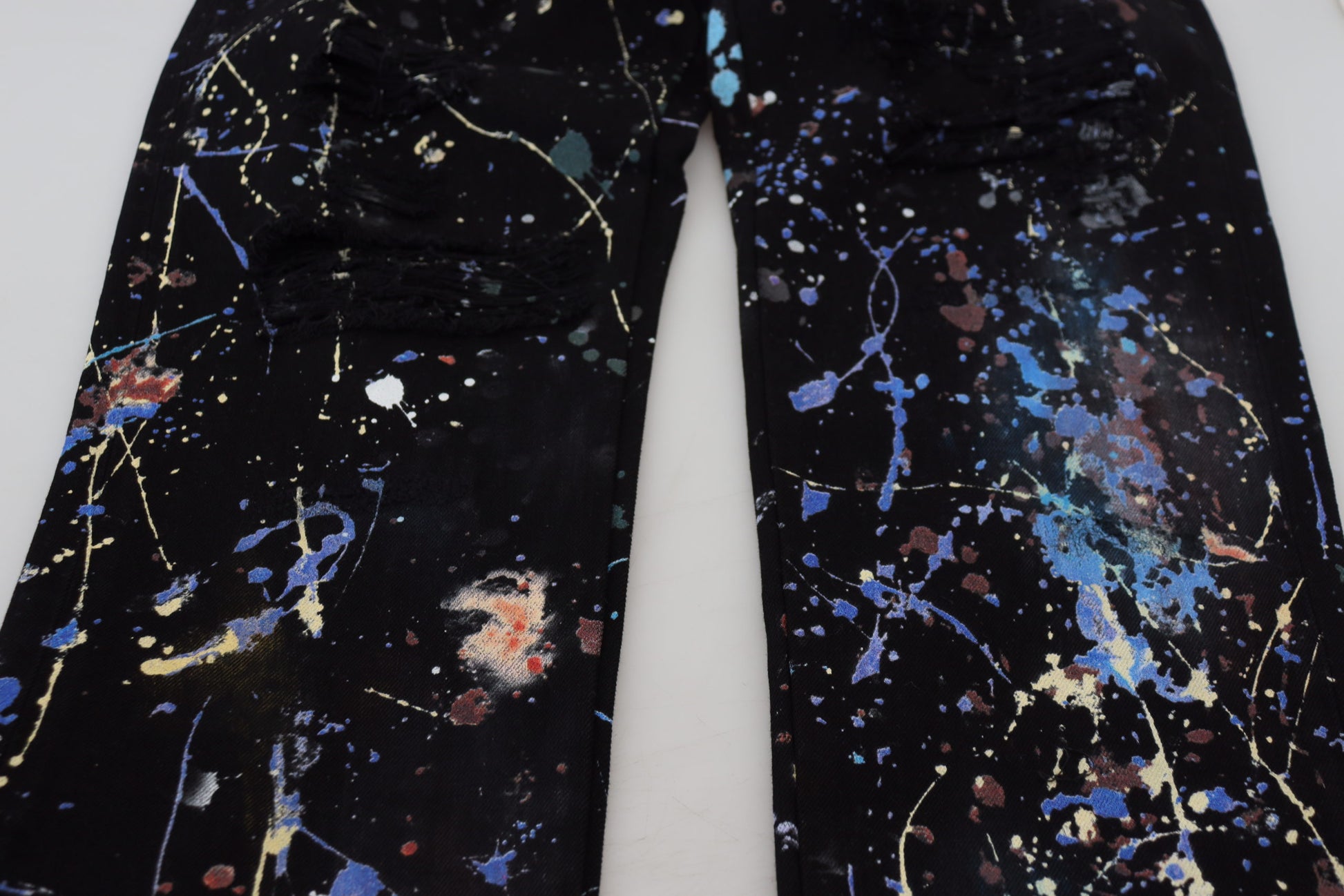 Dolce & Gabbana Black Cotton Color Splash Print Denim Jeans