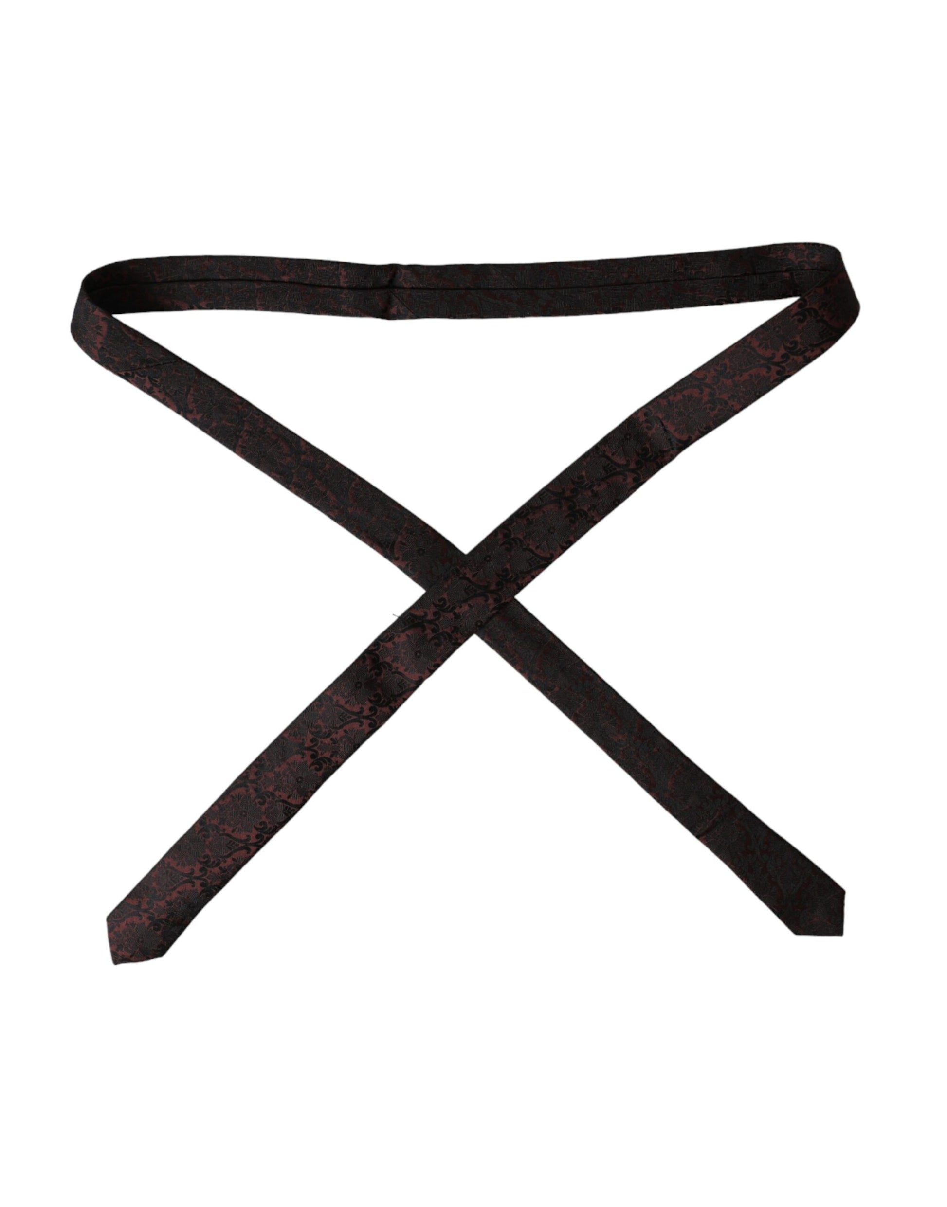 Dolce & Gabbana Maroon Floral Fantasy Silk Adjustable Men Tie