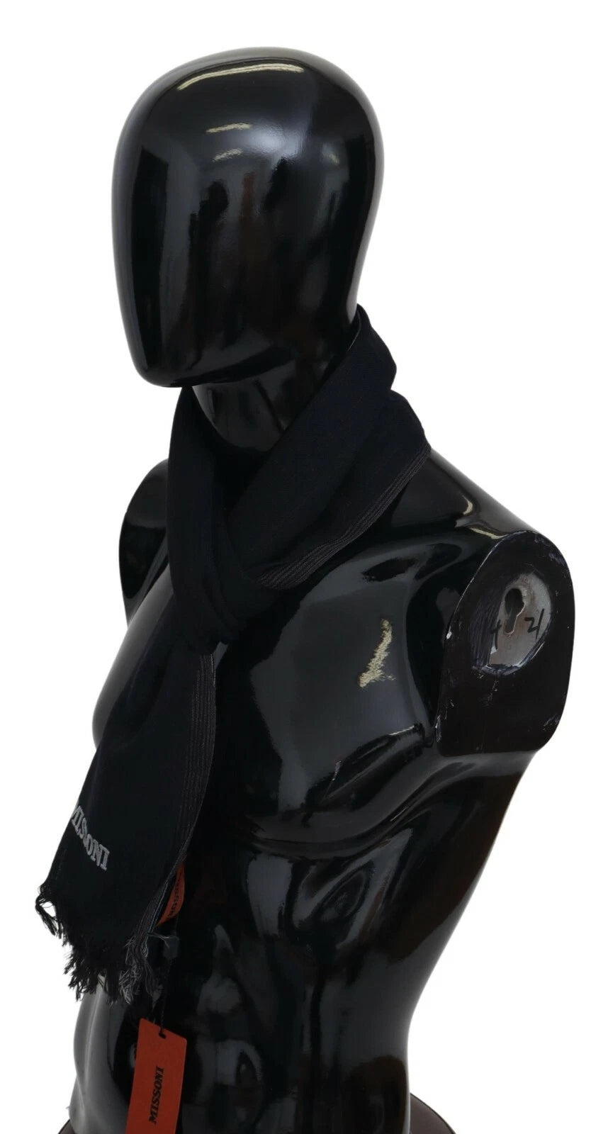 M Missoni Black Striped Wool Unisex Neck Wrap Fringes Logo Scarf